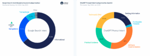 Les intentions diffèrent également : seulement 20 % des prompts ChatGPT sont purement informationnels, contre une large majorité sur Google. Les usages conversationnels privilégient l’exploration, la réflexion et l’aide à la décision.